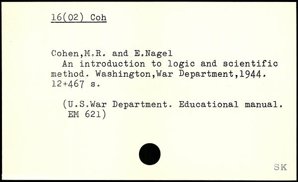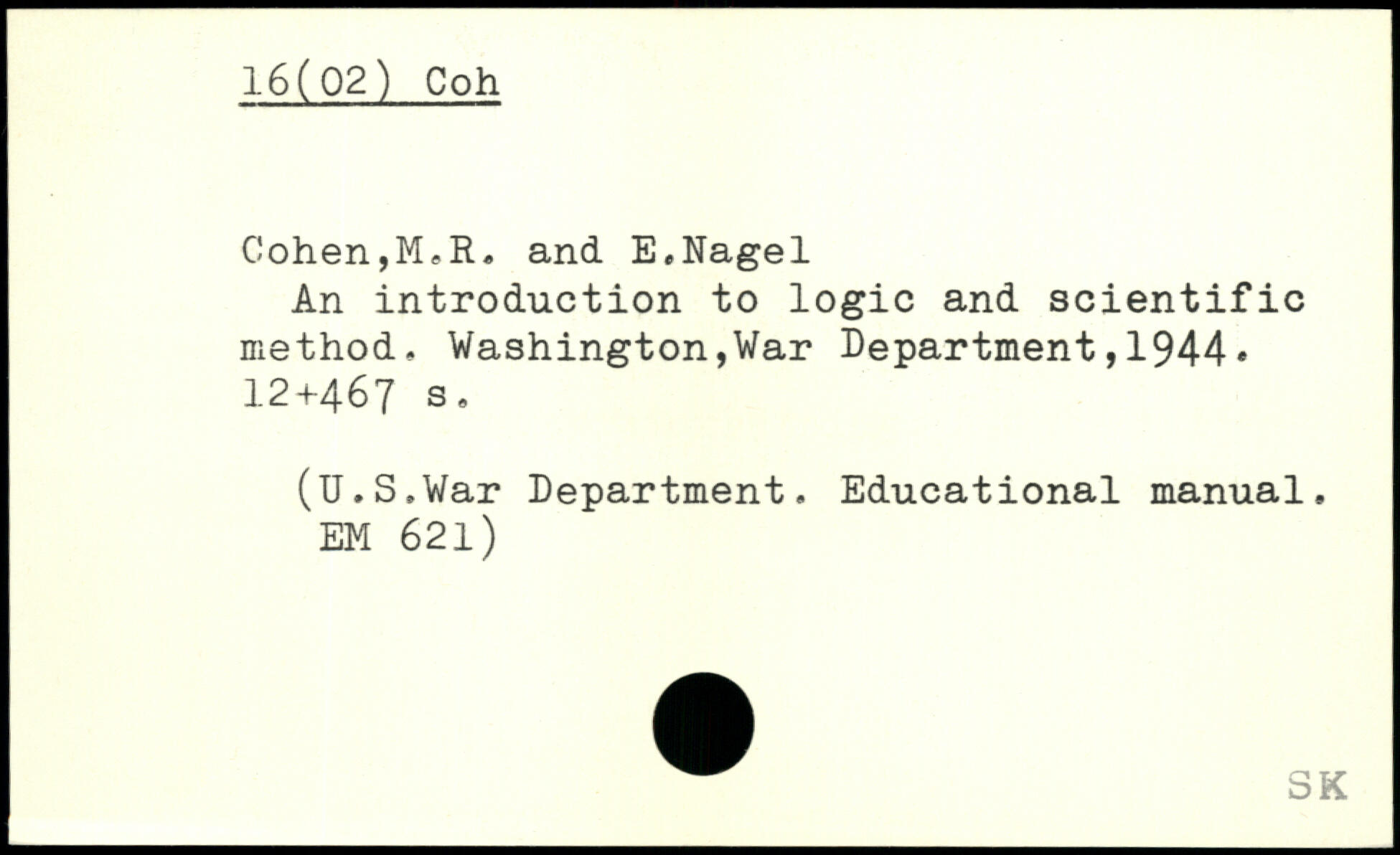 Cohen,MeR. and E,Nagel An introduction to logic and scientific method