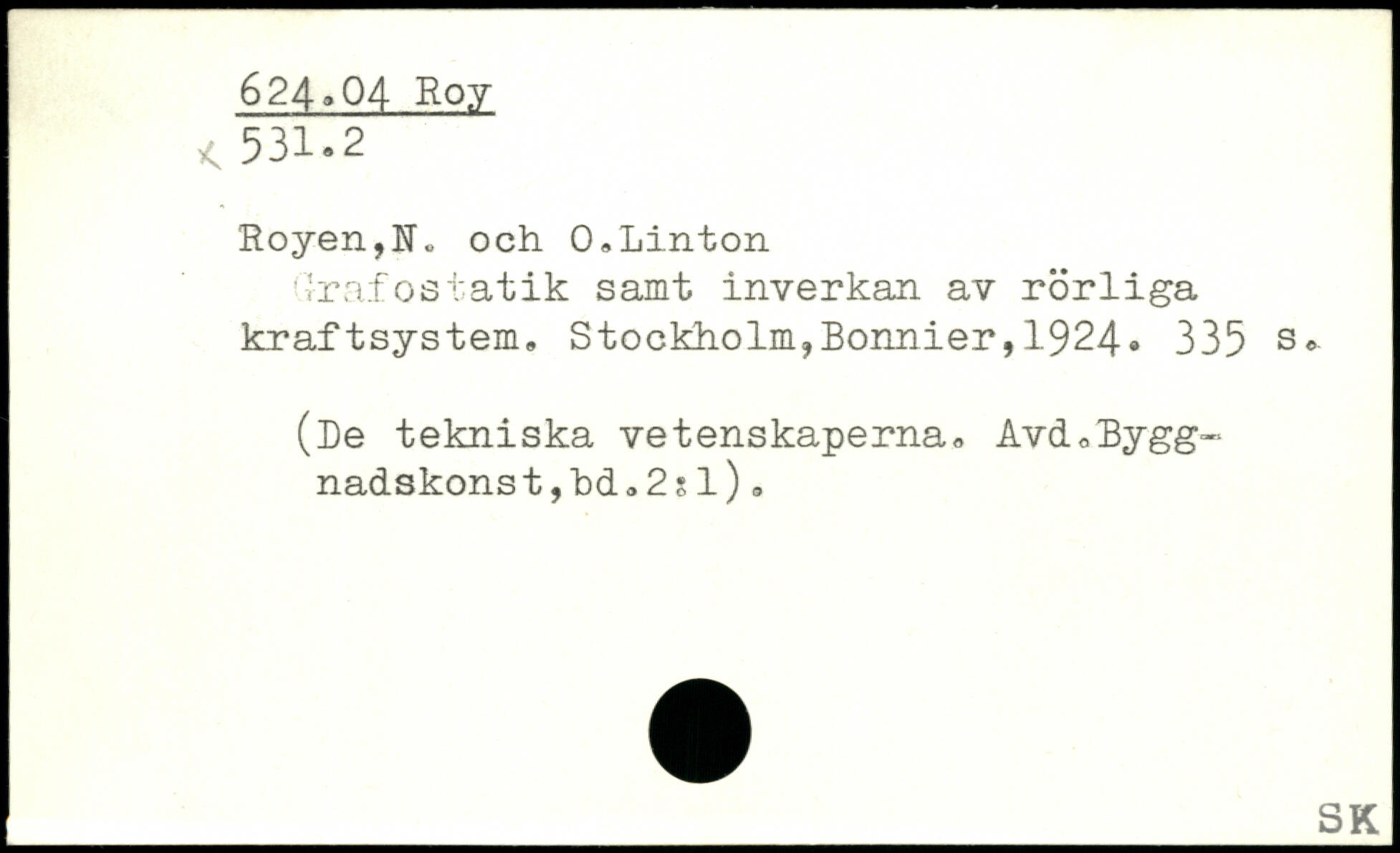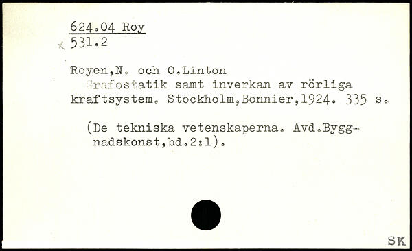 Royen,U, och 0,Linton Qrafostatik samt inverkan av rörliga kraftsystem