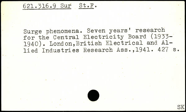Surge phenomena. Seven years' research for the Central Electricity Board (1933-1940). London,British Electrical and Allied Industries Research Ass.,1941