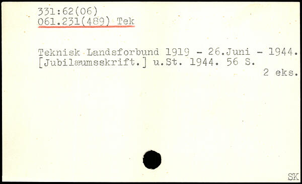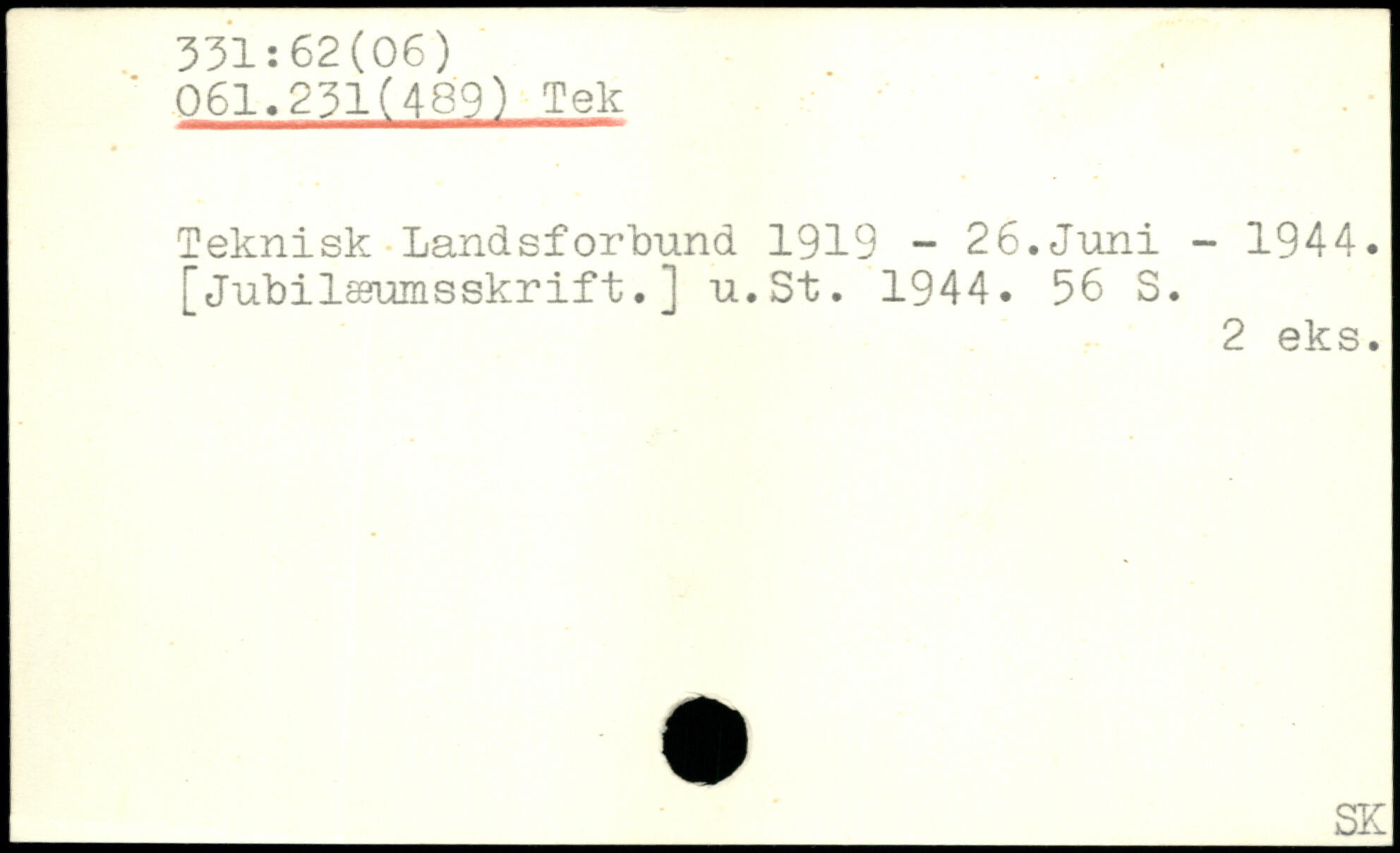 Teknisk Landsforbund 1919 - 26.Juni - 1944. [Jubilæumsskrift.] u.St. 1944.