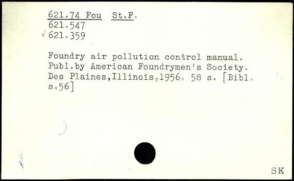 Foundry air pollution control manual. Pull.by American Foundrymen's Society. Des Plaines,1111nois91956o