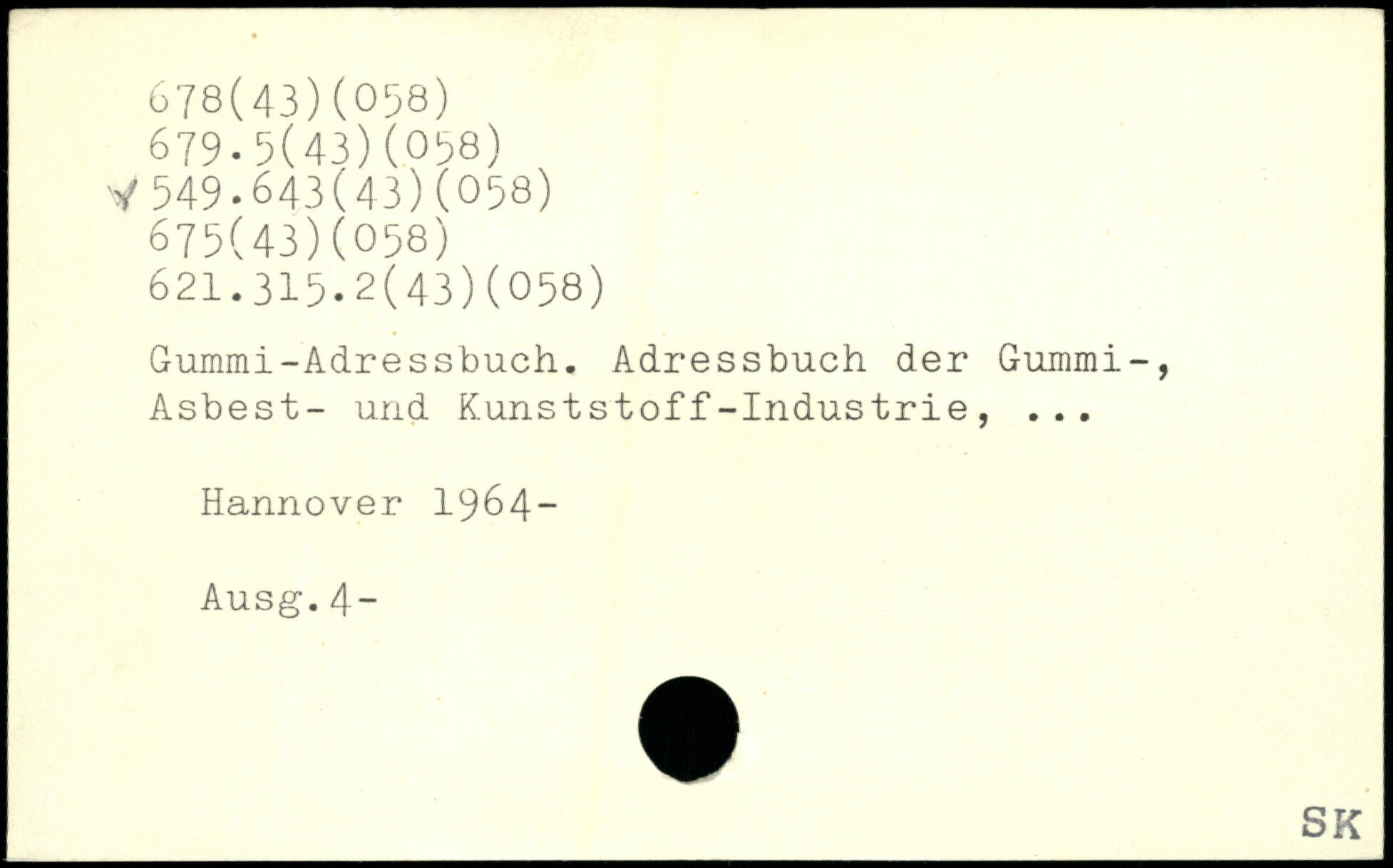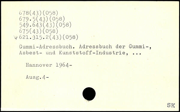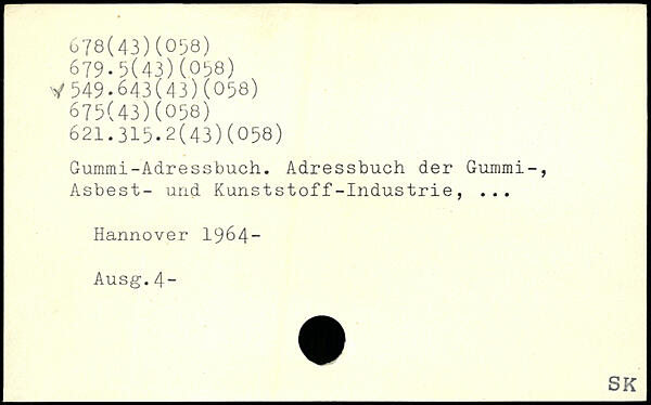 Gummi-Adressbuch. Adressbuch der Gummi-, Asbest- und Kunststoff-Industrie, ...
