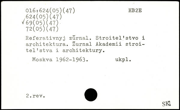 UDK: 016:624(05)(47), 624(05)(47), 69(05)(47), 72(05)(47)