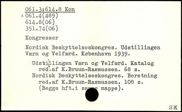 Nordisk Beskyttelseskongres. Udst1111ngen Værn og Velfærd,