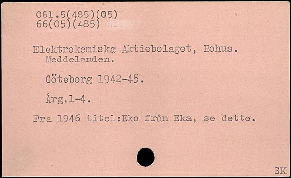 Elektrokemiska Aktiebolaget, Bohus. Me d d e 1 end e n. Göteborg 1942-45. Arg.1-4. Fra 1946 titel:Eko från Eka, se dette. _SK