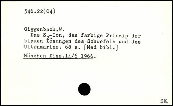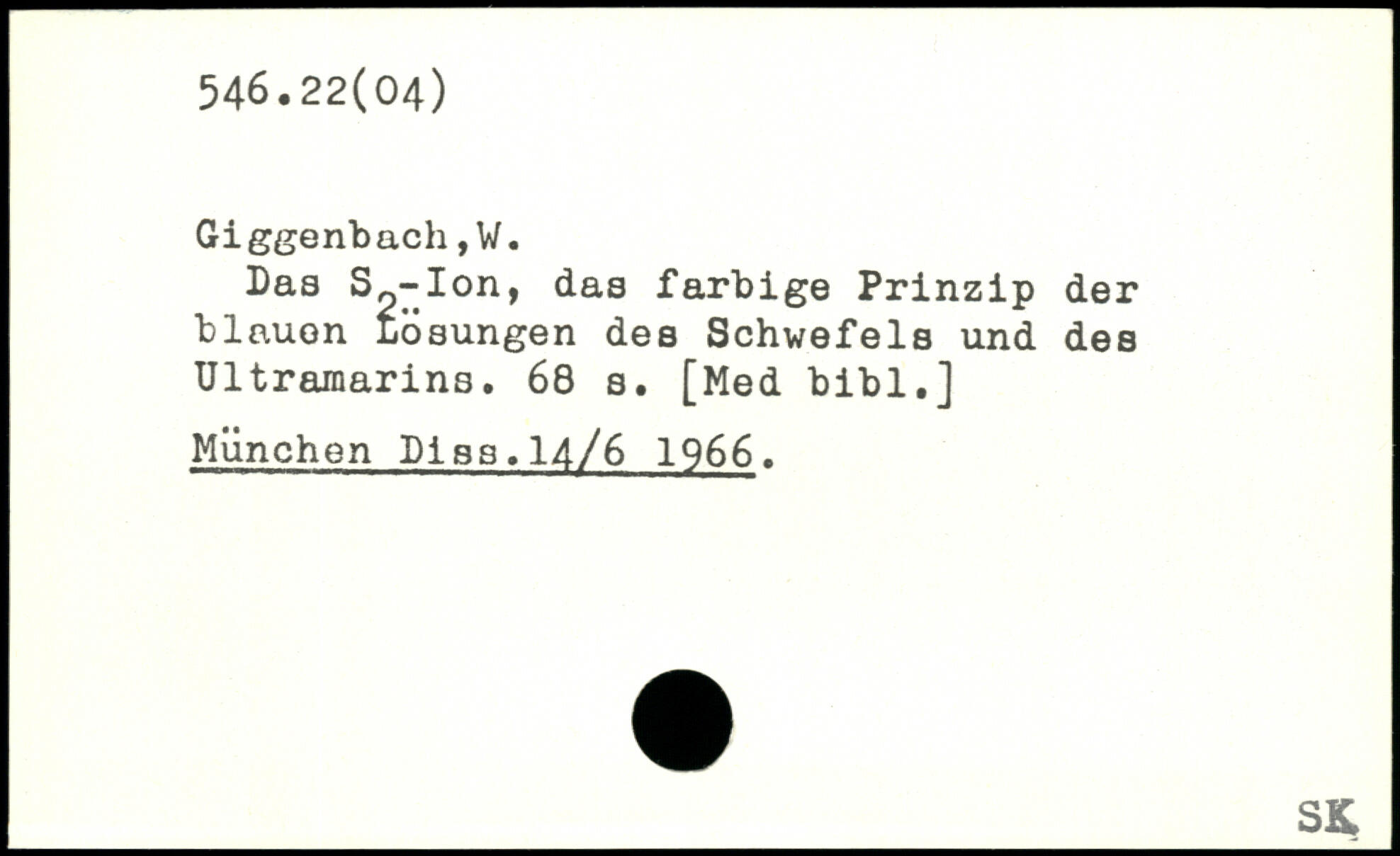 Das Sp-Ion, das farbige Prinzip der blauen Lösungen des Schwefels und des Ultramarins.
