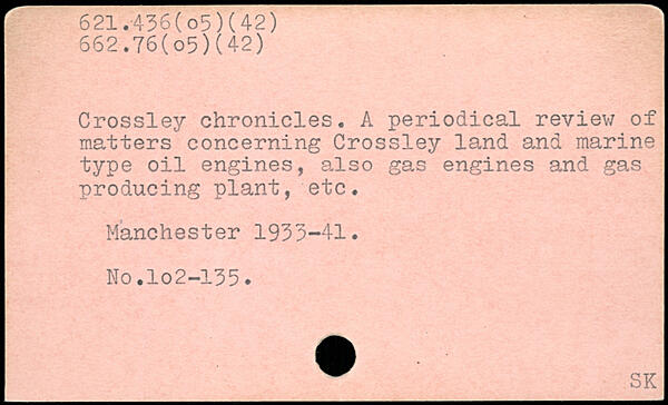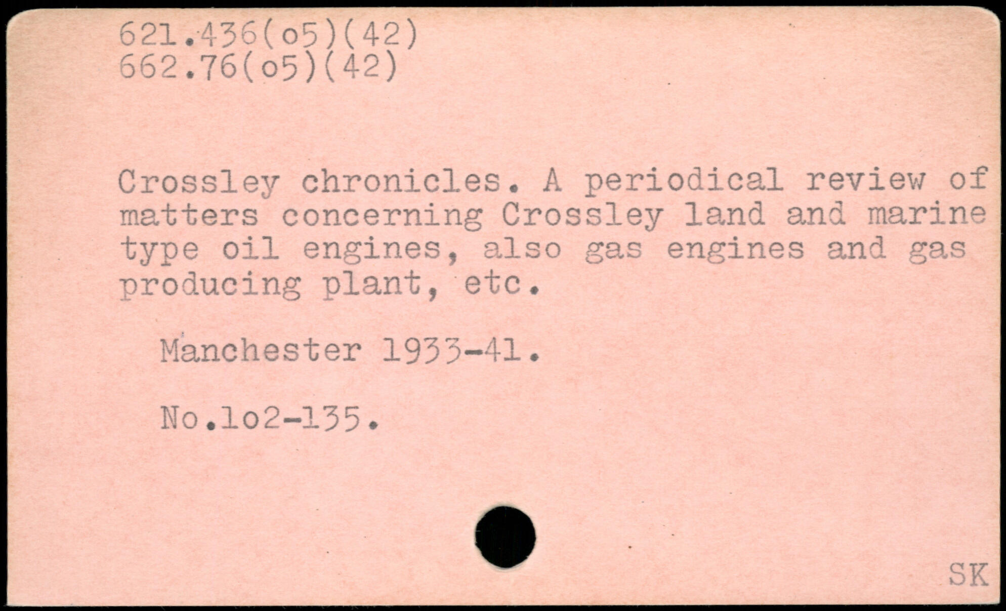 Crossley chronicles. A periodical review of matters concerning Crossley land and marine type oil engines, also gas engines and gas producing plant, etc.