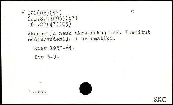 Akademija nauk ukrainskoj SSR. Institut masinovedenija i avtomatiki. Kiev 1957-64-Tom 5-9.