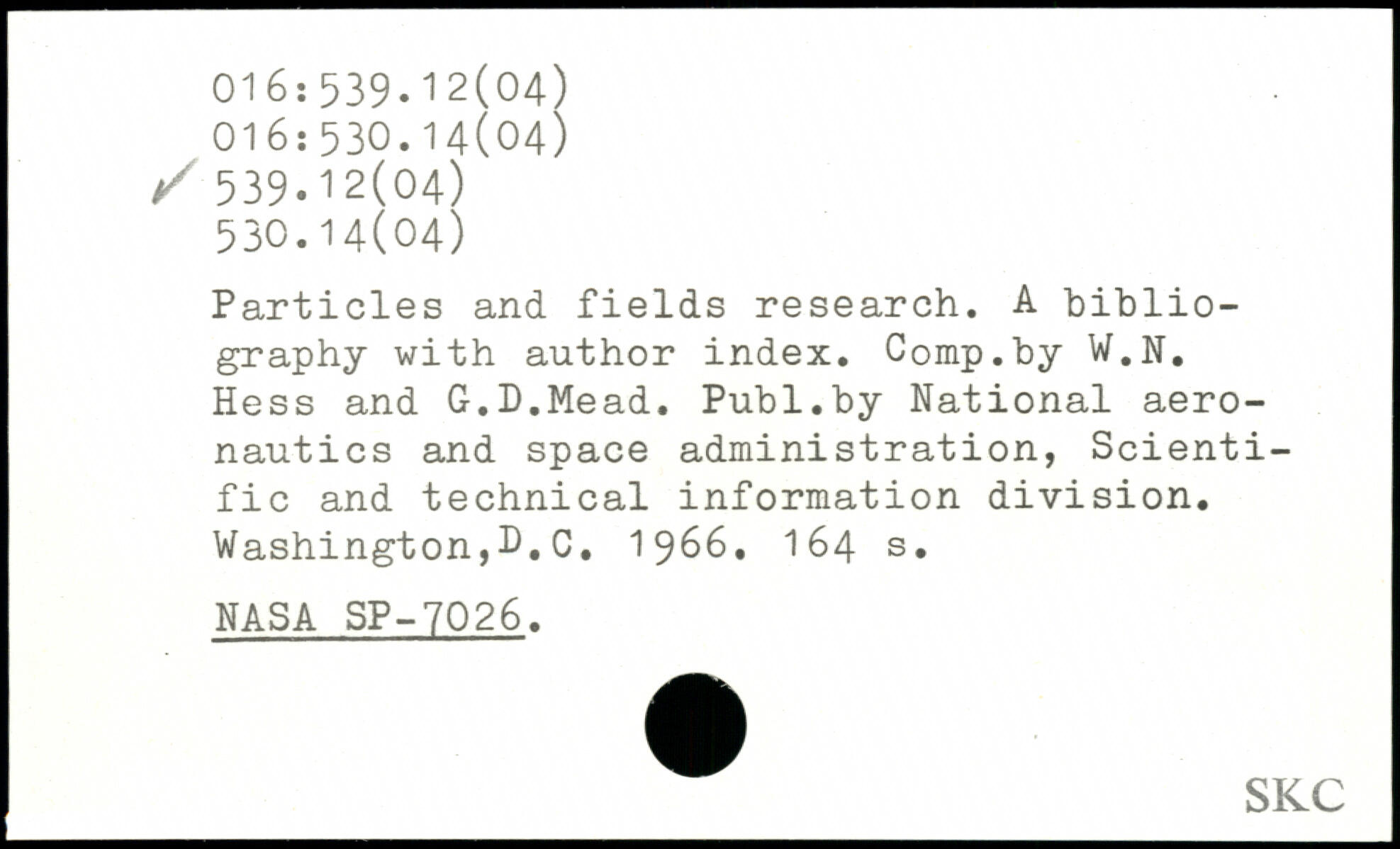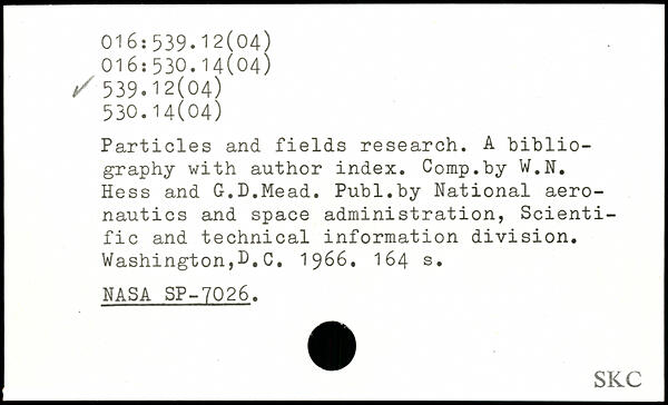 Particles and fields research. A bibliography with author index. Comp.by W.N. Hess and G.D.Mead.
