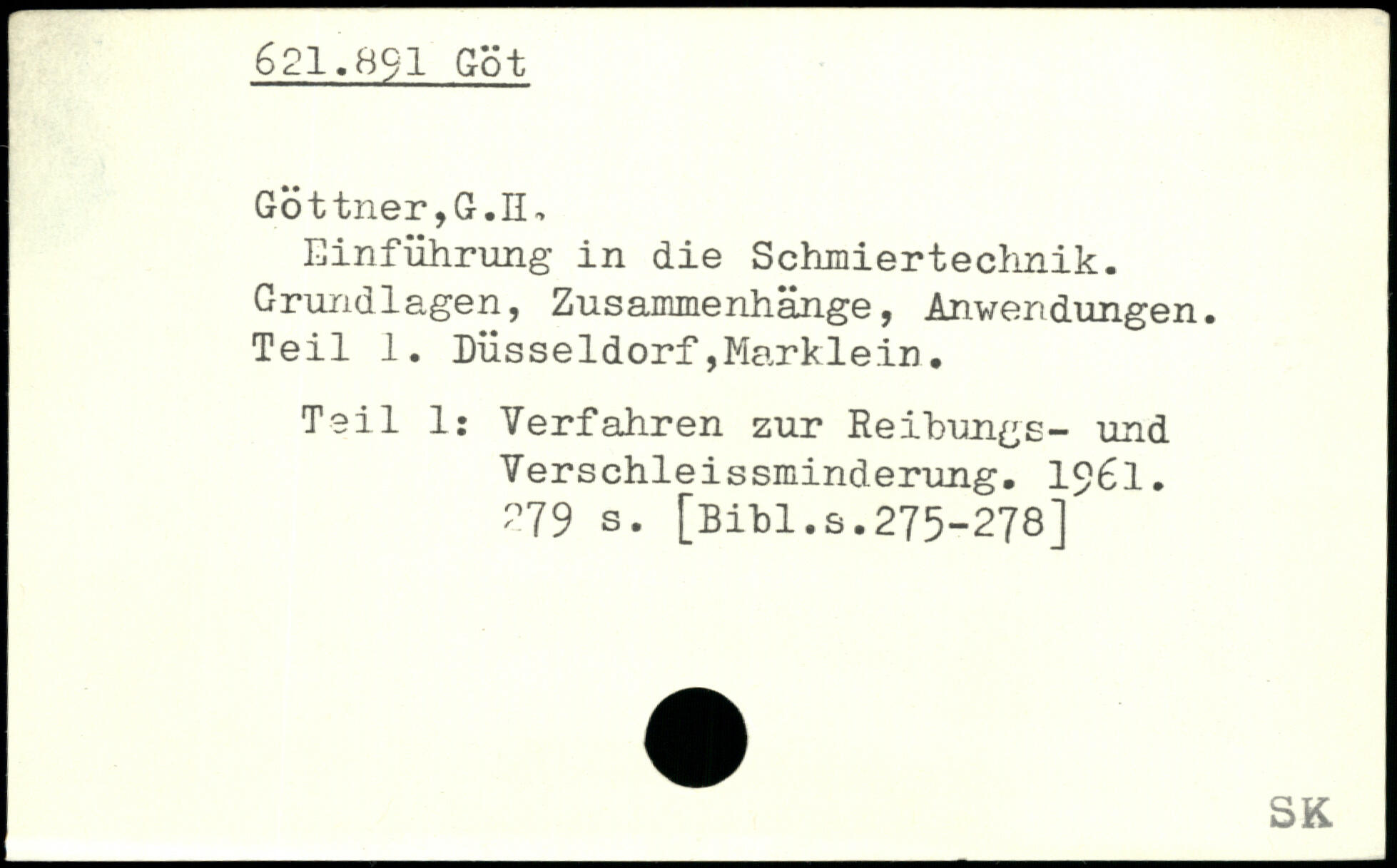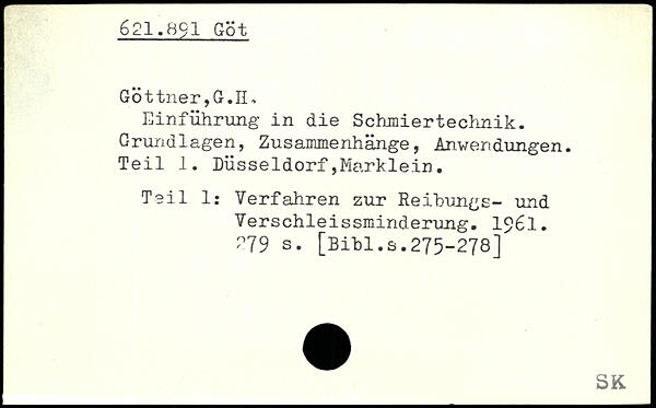 Einführung in die Schmiertechnik. Grundlagen, Zusammenhänge, Anwendungen. Teil 1. Düsseldorf,Marklein. Teil 1: Verfahren zur Reibungs- und Verschleissminderung. 1961.
