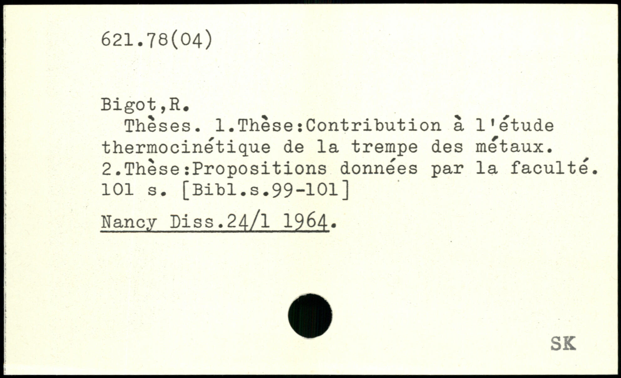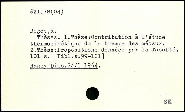 Thèses. 1.ThèseïContribution à l'étude thermocinétique de la trempe des métaux. 2.Thèse:Propositions données par la faculté.