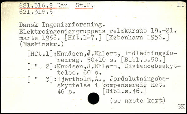 Dansk Ingeniørforening. Elektroingeniørgruppens relækursus 19.-21. marts 1956. [Hft.1-7.]