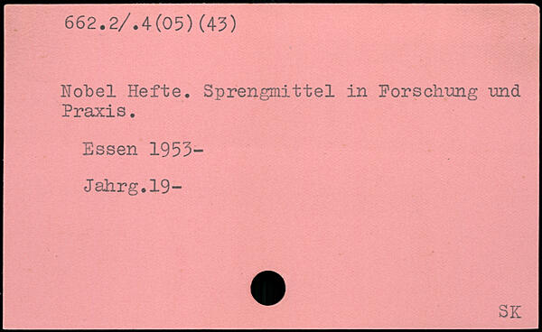 Nobel Hefte. Sprengmittel in Forschung und Praxis.