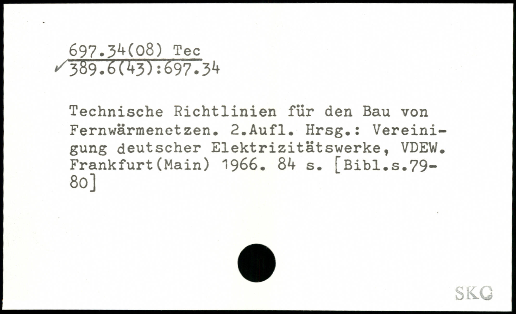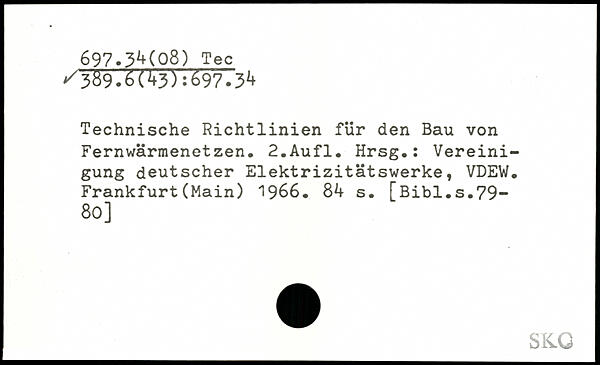 Technische Richtlinien für den Bau von Fernwärmenetzen, 2,Aufl. Hrsg.: Vereinigung deutscher Elektrizitätswerke, VDEW. Frankfurt(Main) 1966, Sk s.
