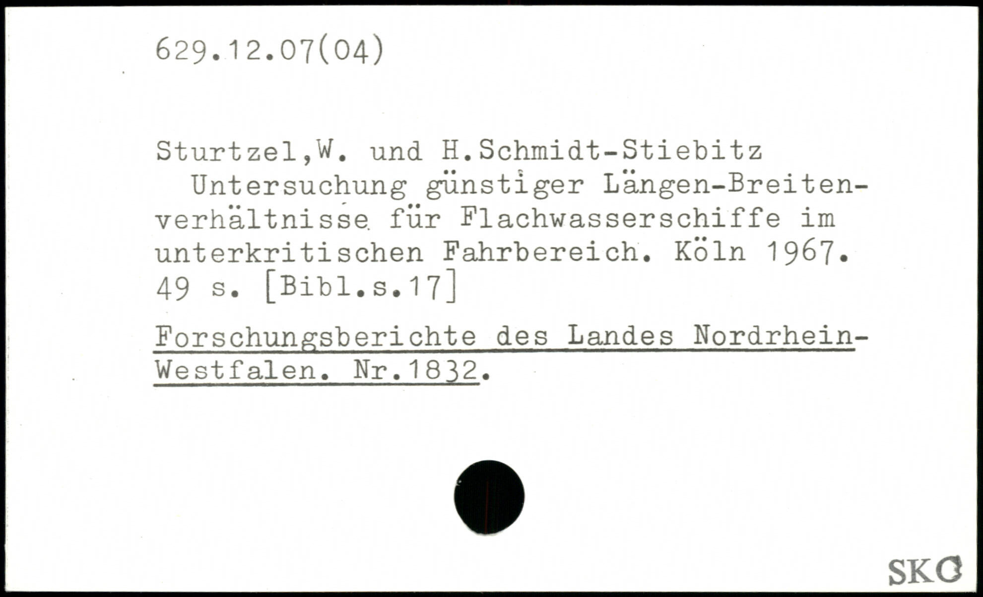 Untersuchung günstiger Langen-Breiten-verhältni sse. für Flachwasserschiffe im unterkritisehen Fahrbereich.