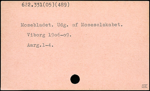 Mosebladet. Udg. af Moseselskabet. Viborg 1906-09. Aarg.1-4.