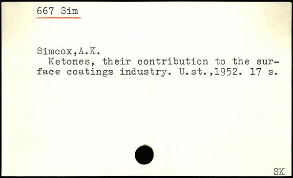 Ketones, their contribution to the surface coatings industry. U.st.,1952.