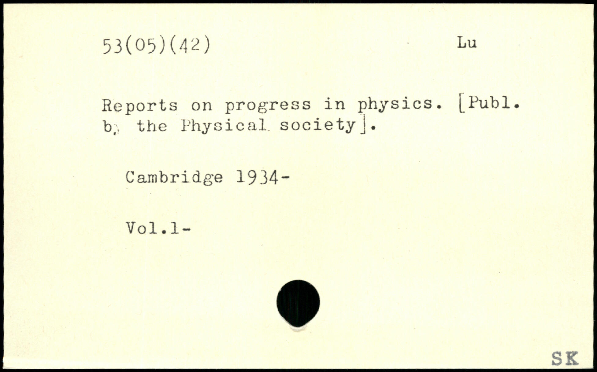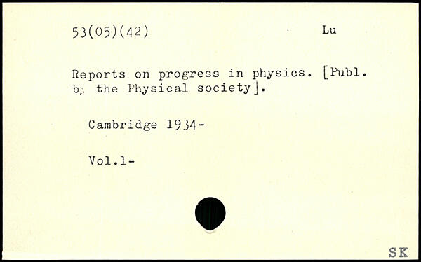 Reports on progress in physics. [Publ. b,, the Physical, society].