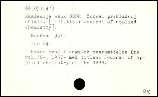 Akademija nauk SSSRC 2urnal prikladnoj chimiio [Tidlntitci Journal of applied e-hemistry] 0