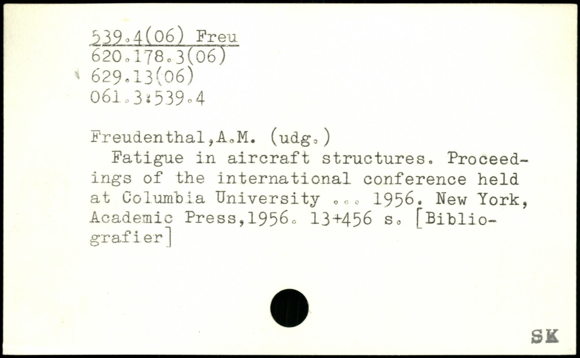 Fatigue in aircraft structures. Proceedings of the international conference held at Columbia University <,<,<, 1956.