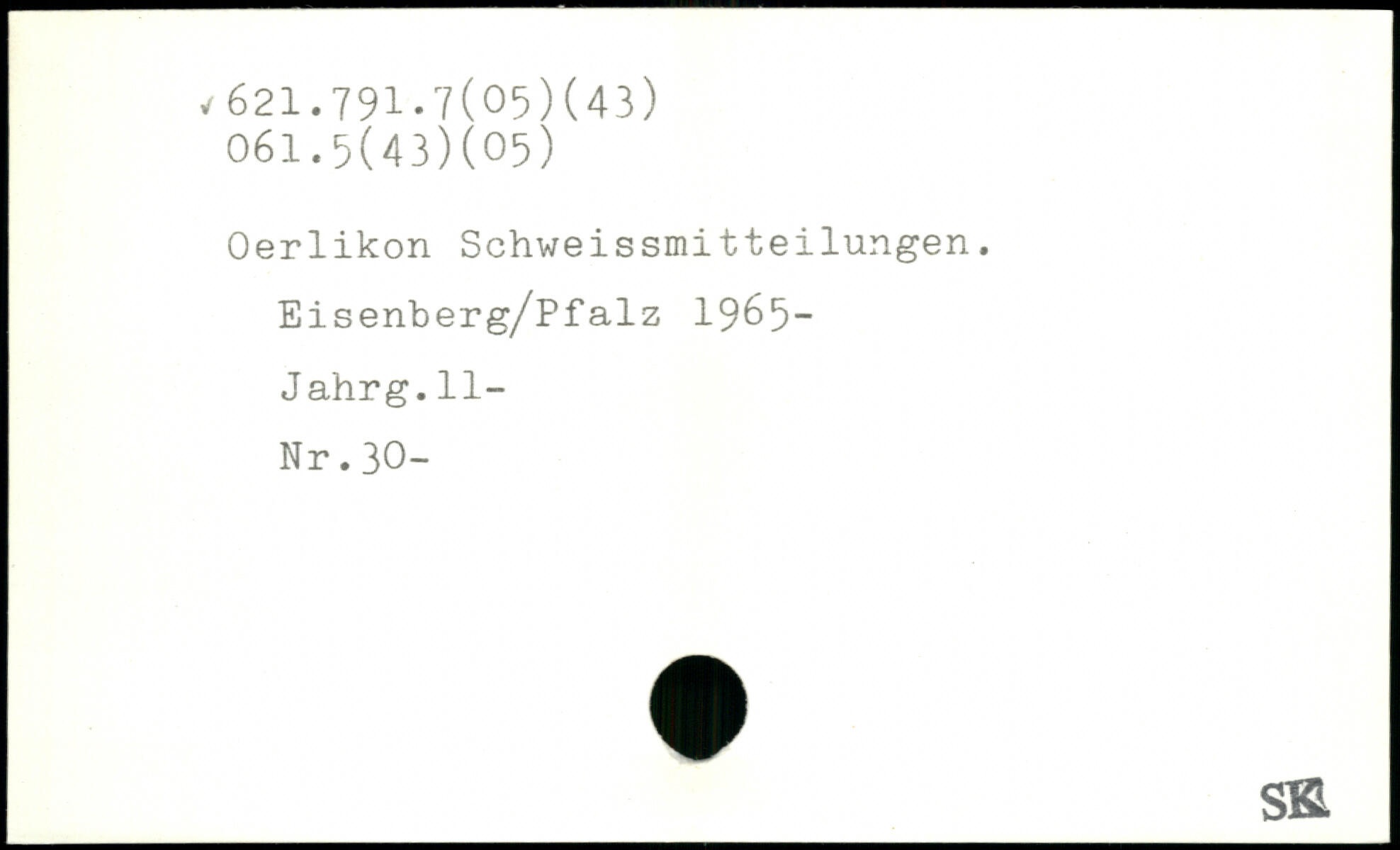 Oerlikon Schweissmitteilungen. Eisenberg/Pfalz 1965-Jahrg.11-Nr.30- _SBL