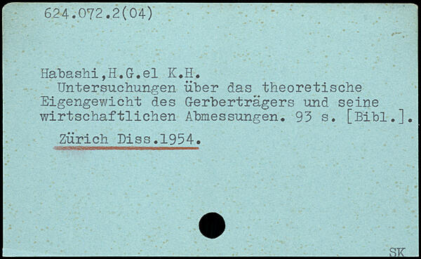 ir -. ’ '. . Habashi ,H.Gr.el K.H. Untersuchungen über das theoretische Eigengewicht des G-erberträgers und seine wirtschaftlichen Abmessungen.