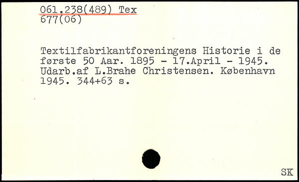 Textilfabrikantforeningens Historie i de første 50 Aar. 1895 - 17.April - 1945. Udarb.af L.Brahe Christensen.