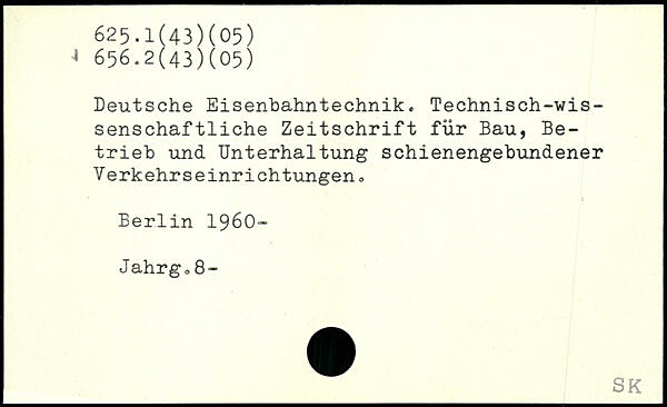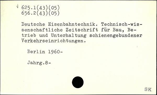 Deutsche Eisenbahntechnik. Technisch-wissenschaftliche Zeitschrift für Bau, Betrieb und Unterhaltung schienengebundener Verkehrseinrichtungen
