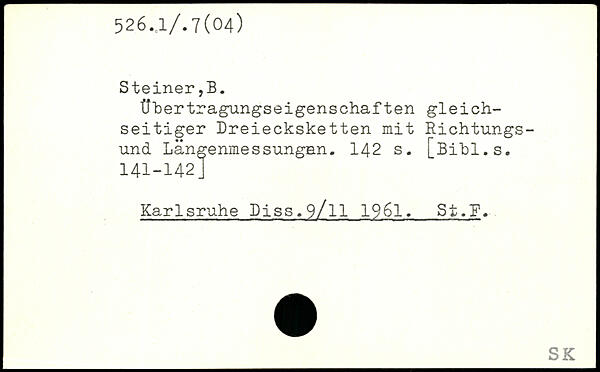 Ühertragungseigenschaften gleichseitiger Dreiecksketten mit Richtungsund Längenmessungsn.