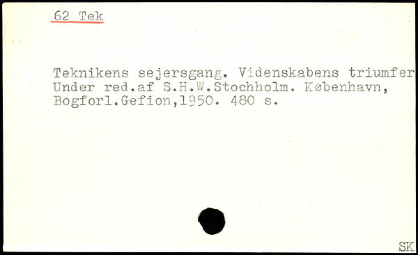 Teknikens sejersgang. Videnskabens triumfer Under red.af S.H.W.Stochholm. København, Bogforl.Gefion,1950.