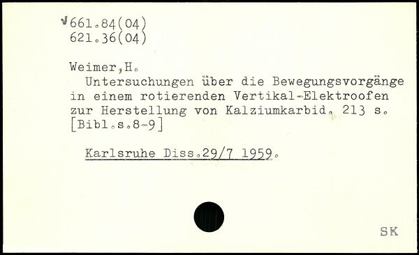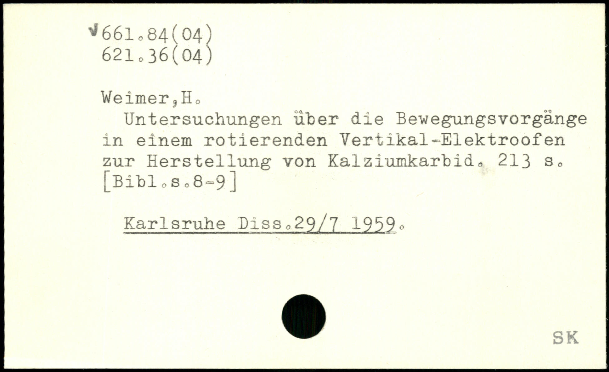 Weimer?Ho Untersuchungen über die Bewegungsvorgänge in einem rotierenden Vertikal-Elektroofen zur Herstellung von Kalziumkarbid0
