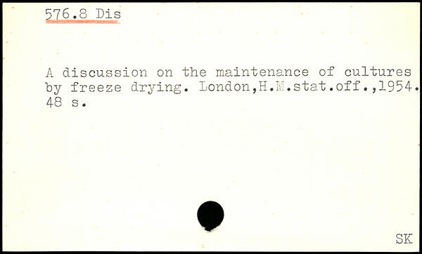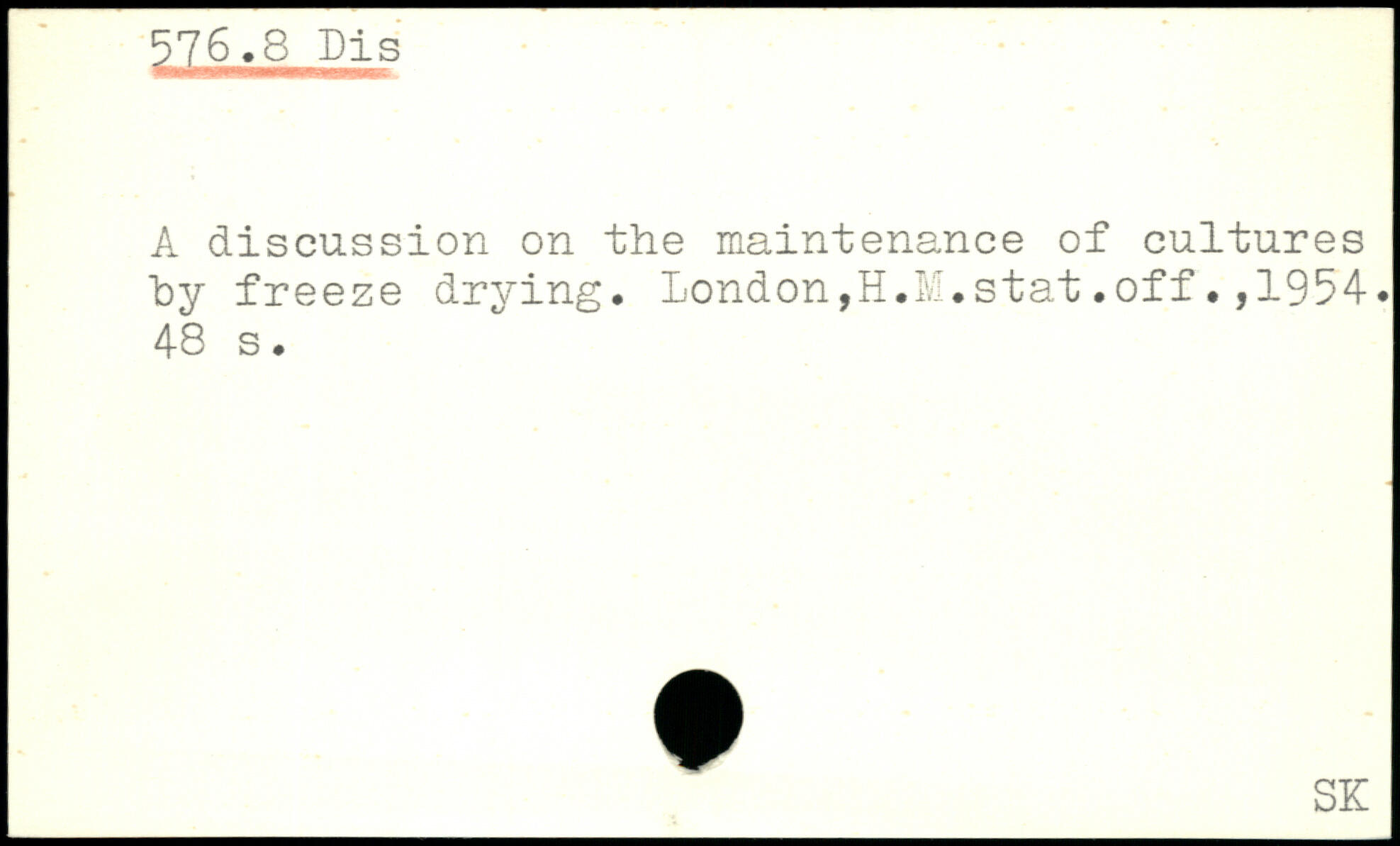 A discussion on the maintenance of cultures hy freeze drying. London,H.M.stat.off.,1954.