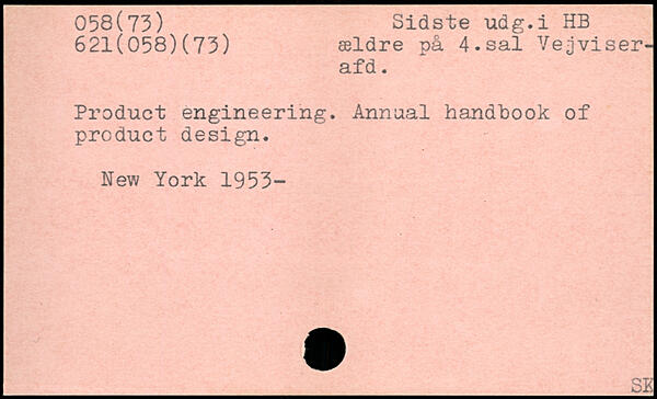 te udg.i HB 621(058)(73) ældre på 4.sal Vejviser- afd. Product engineering. Annual handbook of product design.