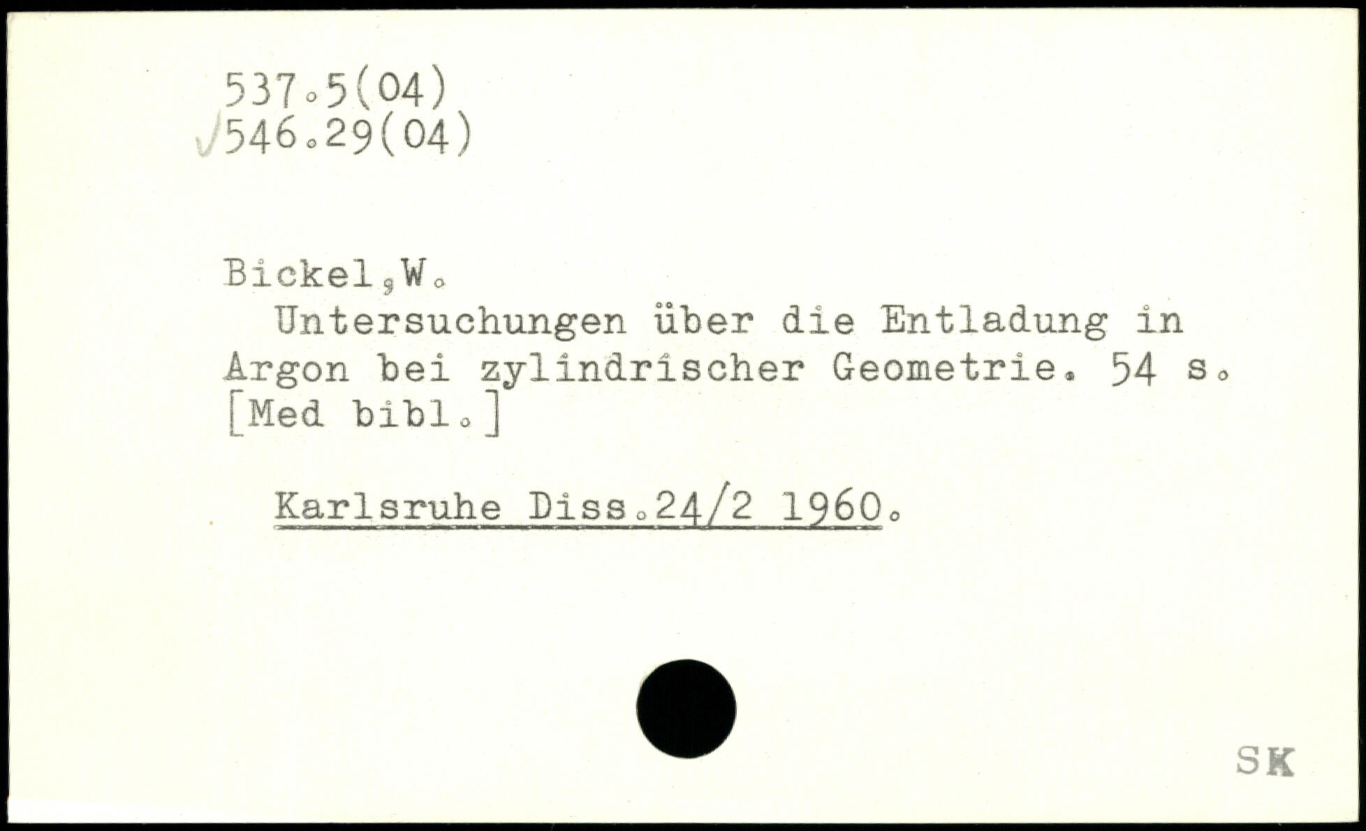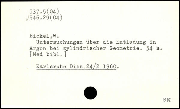 Bickel3Wo Untersuchungen über die Entladung in Argon bei zylindrischer Geometrie.