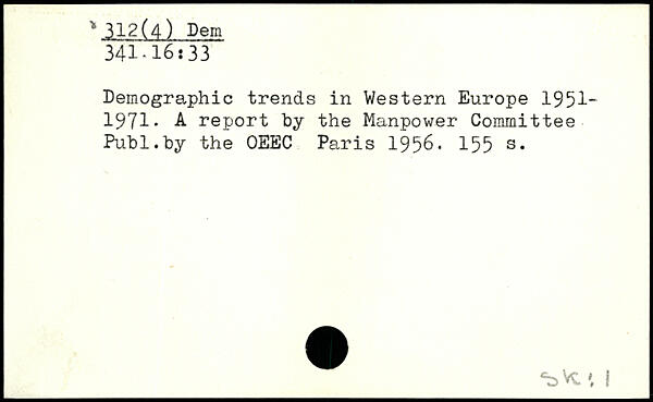 Demographic trends in Western Europe 1951-1971. A report by the Manpower Committee