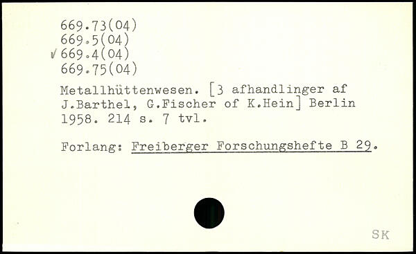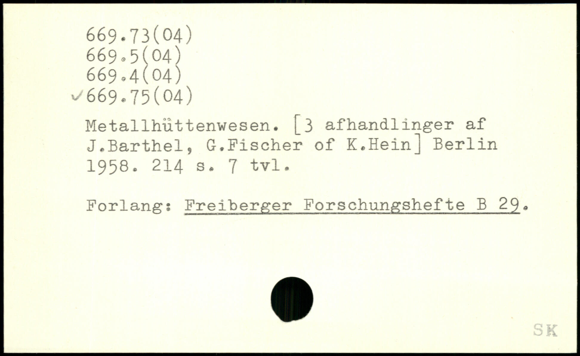 Metallhüttenwesen. [3 afhandlinger af J,Barthel, G.Fischer of K.Hein]
