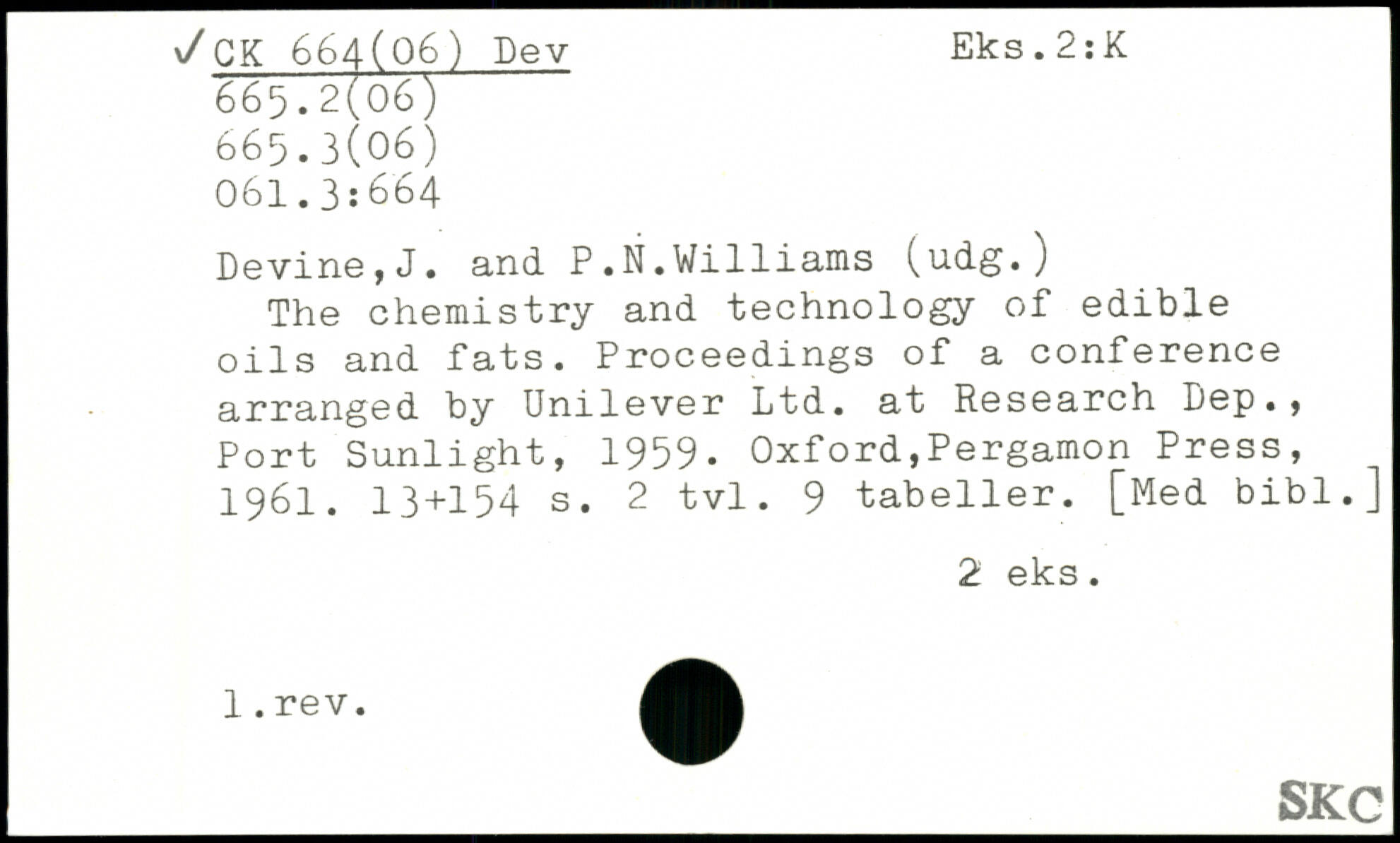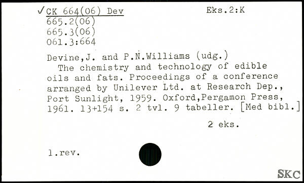 The chemistry and technology of edible oils and fats. Proceedings of a conference arranged by Unilever Ltd. at