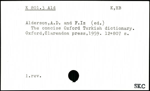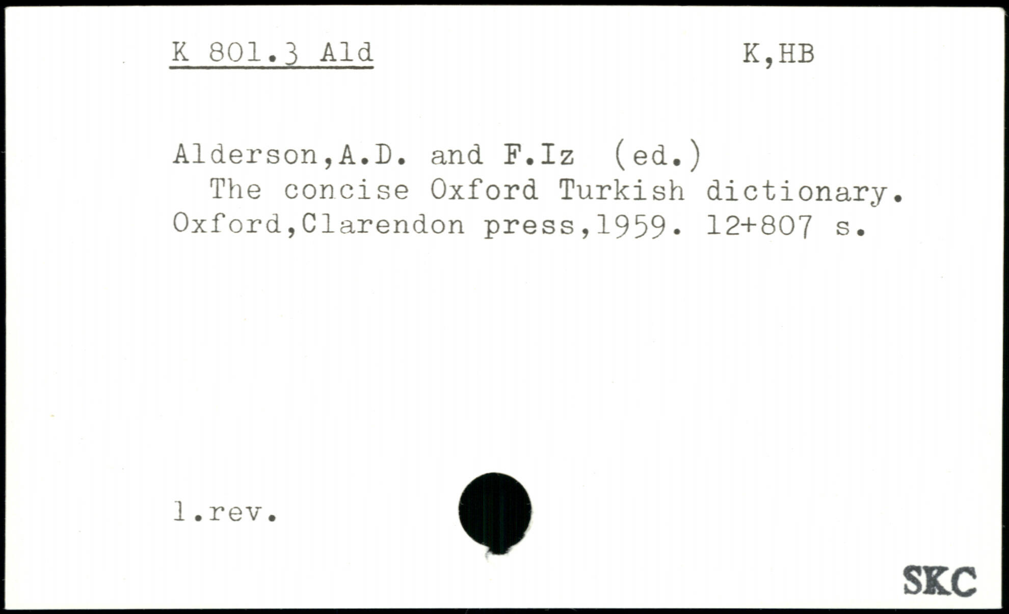 Alderson,A.D. and F.Iz (ed.) The concise Oxford Turkish dictionary.