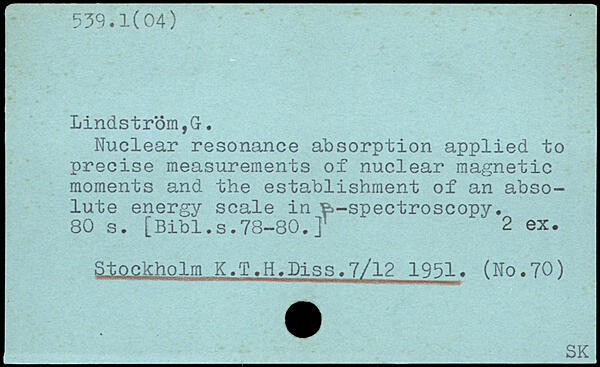 Nuclear resonance absorption applied to precise measurements of nuclear magnetic moments and the establishment of an absolute energy scale in B>-speetroscopy.
