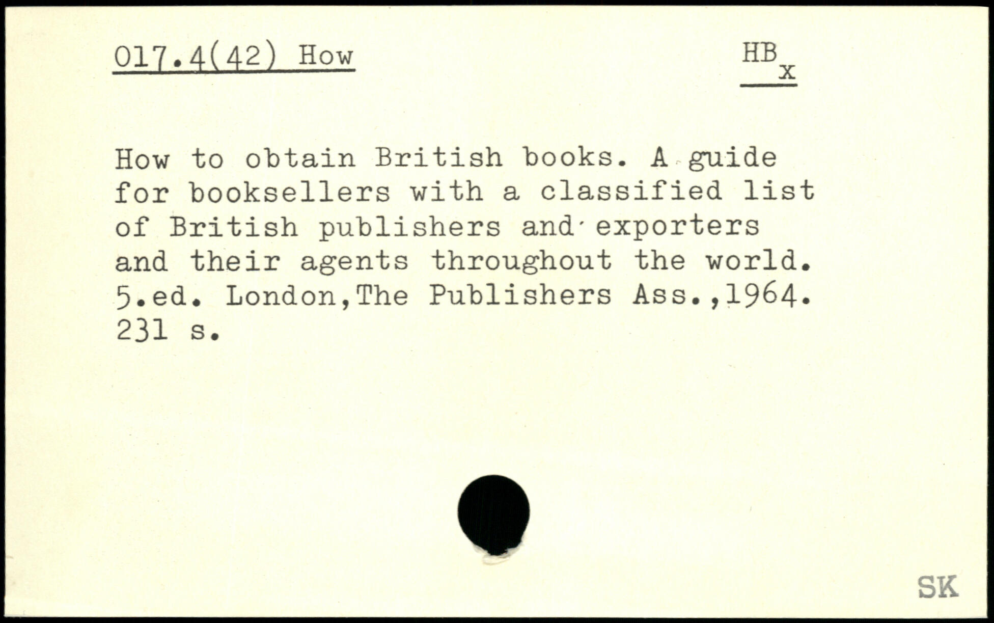 How to obtain British books. A guide for booksellers with a classified list of British publishers and'exporters and their agents throughout the world.