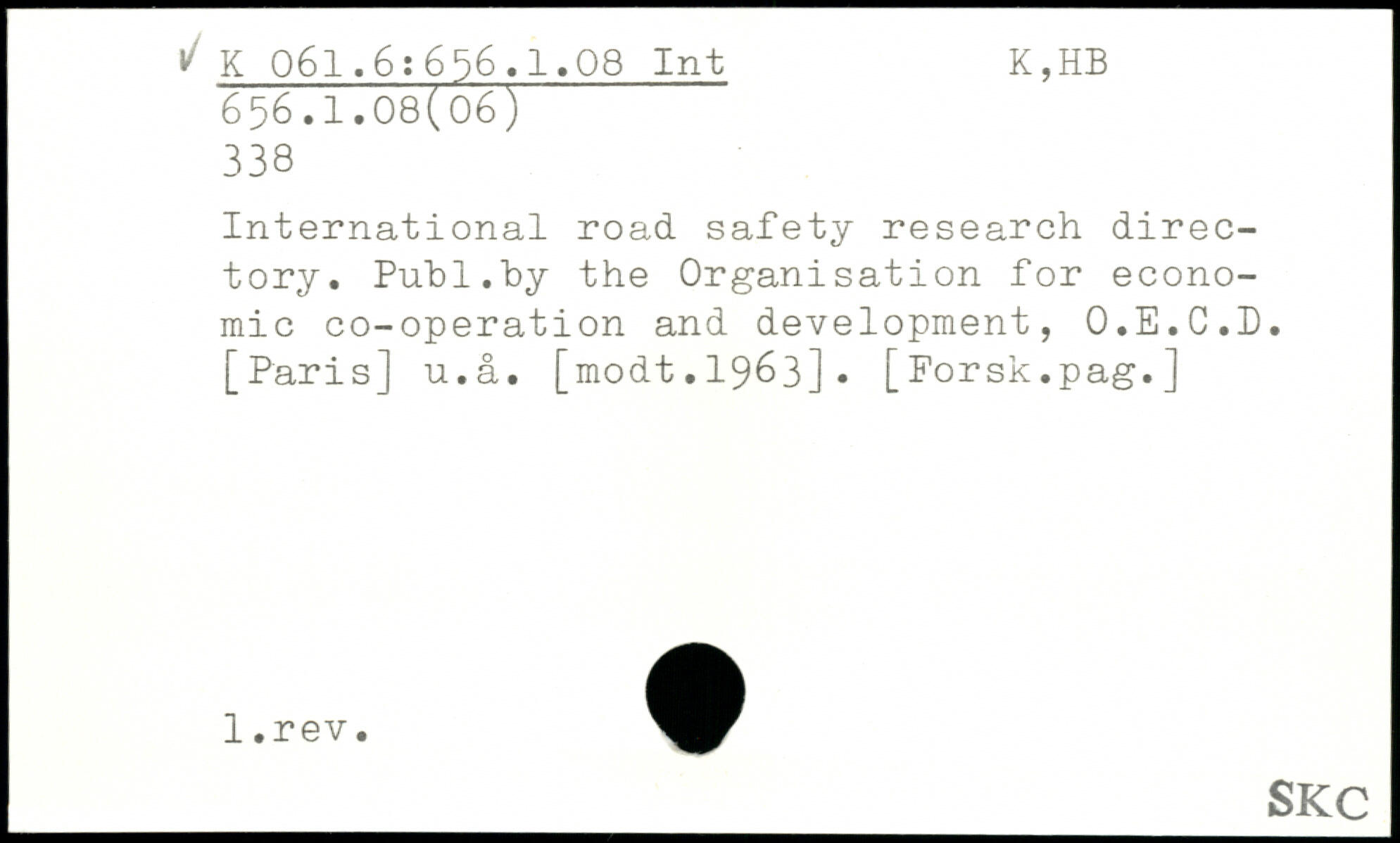 International road safety research directory. Puhl.by the Organisation for economic co-operation and development, O.E.C.D. [Paris] u.a.