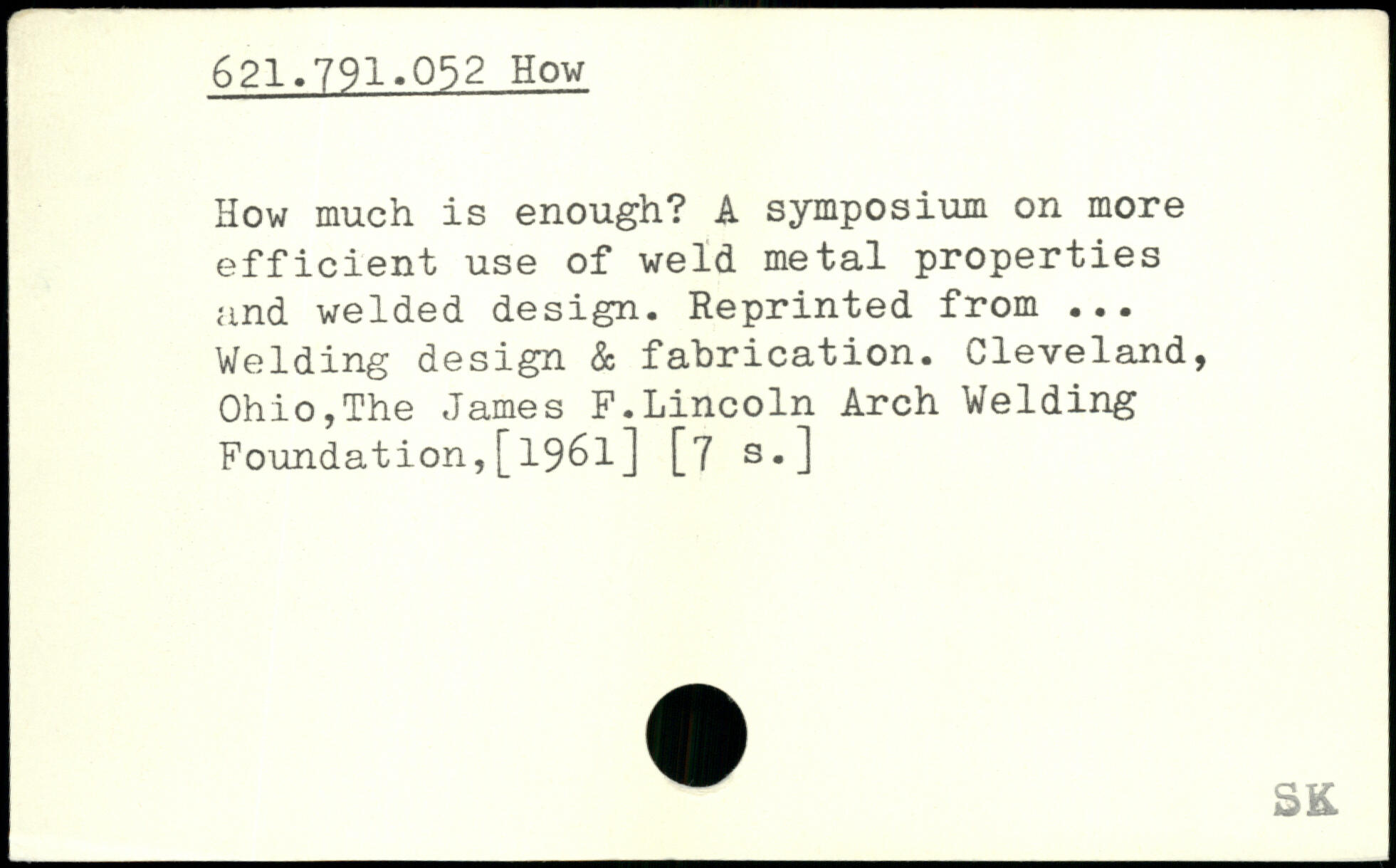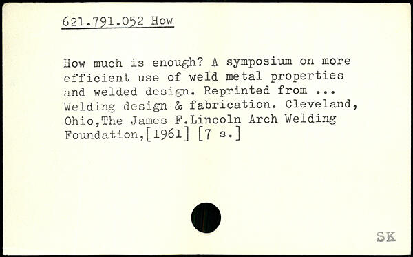 How much is enough? A symposium on more efficient use of weld metal properties and welded design. Reprinted from ... Welding design & fabrication. Cleveland, Ohio,The James F.Lincoln Arch Welding Foundation,[1961] [