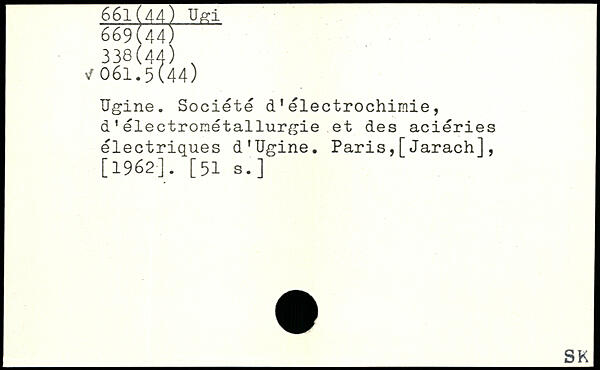 Ugine. Société d'électrochimie, d'électronétallurgie et des aciéries électriques d'Ugine. Paris,[Jarach],