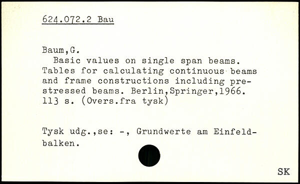Basic values on single span beams. Tables for calculating continuous beams and frame constructions including prestressed beams.