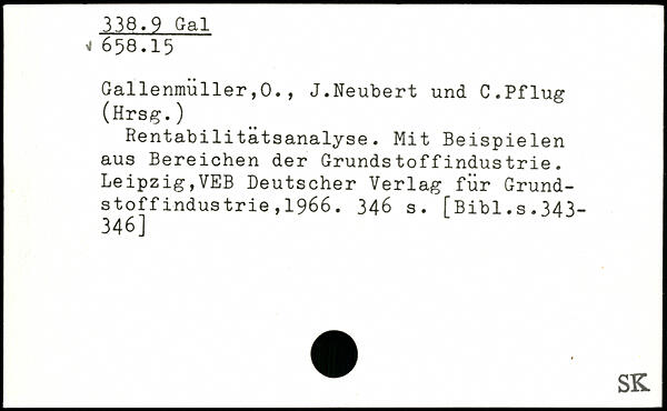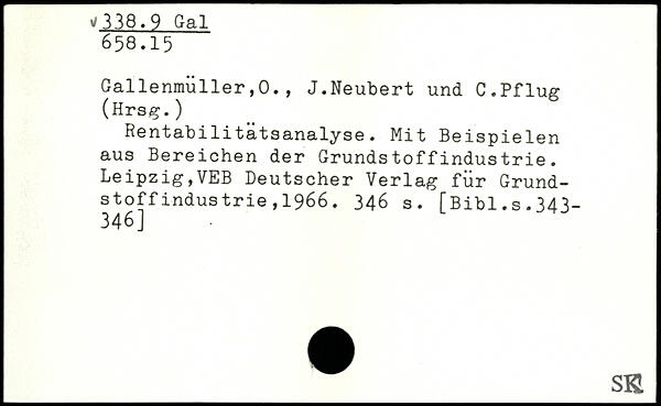 Rentabilitätsanalyse. Mit Beispielen aus Bereichen der Grundstoffindustrie. Leipzig,VEB Deutscher Verlag für Grundstof f indus trie , 1966.