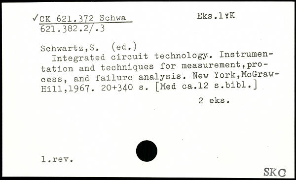 Schwärt z, S. (ed.) Integrated circuit technology. Instrumentation and techniques for measurement,process, and failure analysis.