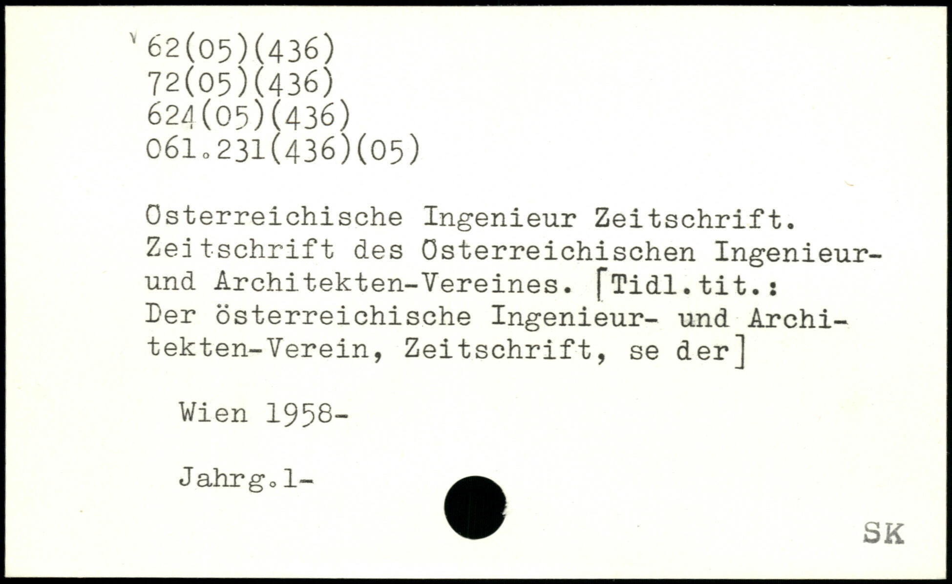 Österreichische Ingenieur Zeitschrift. Zeitschrift des Österreichischen Ingenieur-und Architekten-Vereines. fTidl.tit.: her österreichische Ingenieur- und Archi-tekten-Verein, Zeitschrift, se der] Vien 1958- Jahrgd-