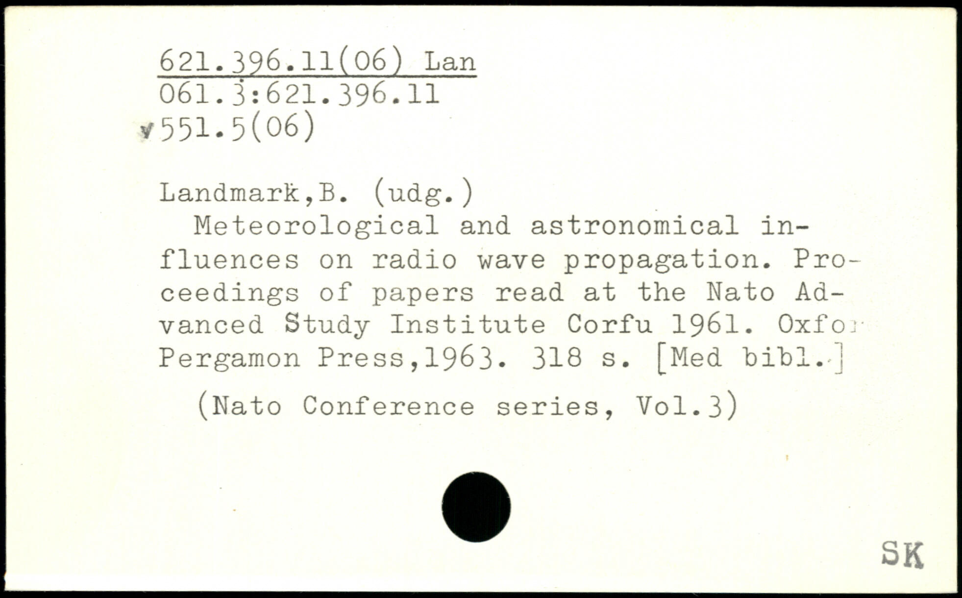 Meteorological and astronomical influences on radio wave propagation. Proceedings of papers read at the Nato Advanced Study Institute Corfu 1961. Oxfor Pergamon Press,1963.