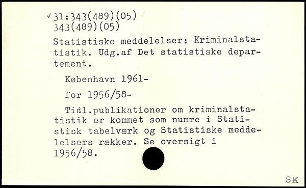 Statistiske meddelelser: Kriminalsta-tistik. Udg.af Det statistiske departement.