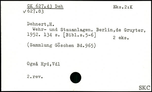 Wehr- und Stauanlagen. Berlin,de Gruyter, 1952.